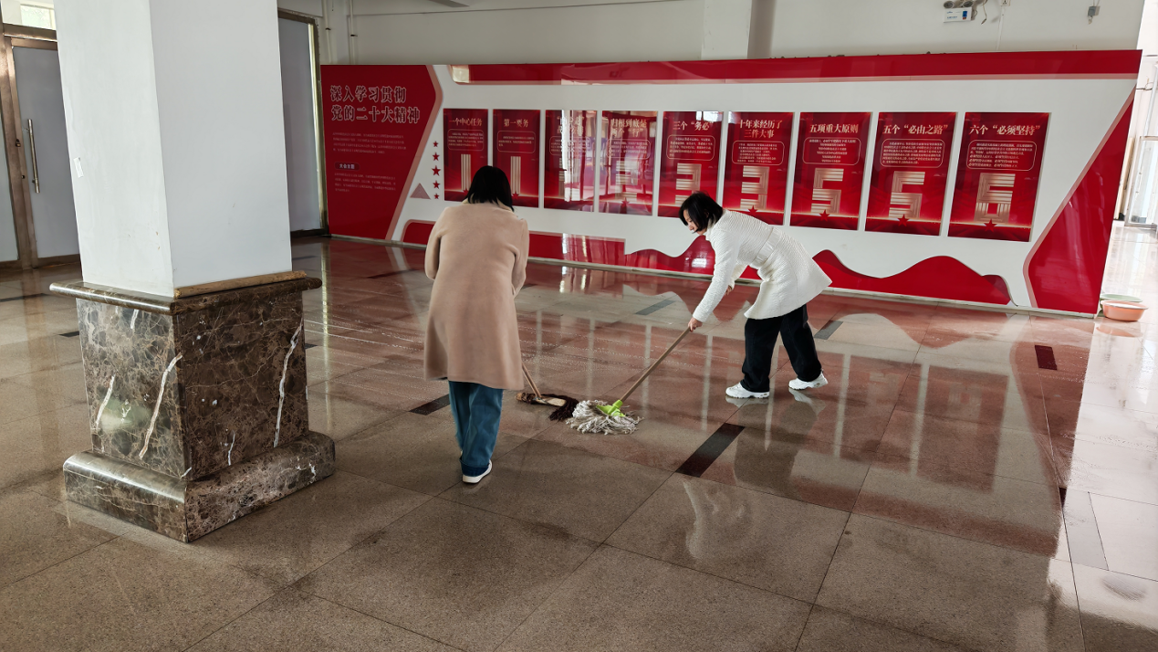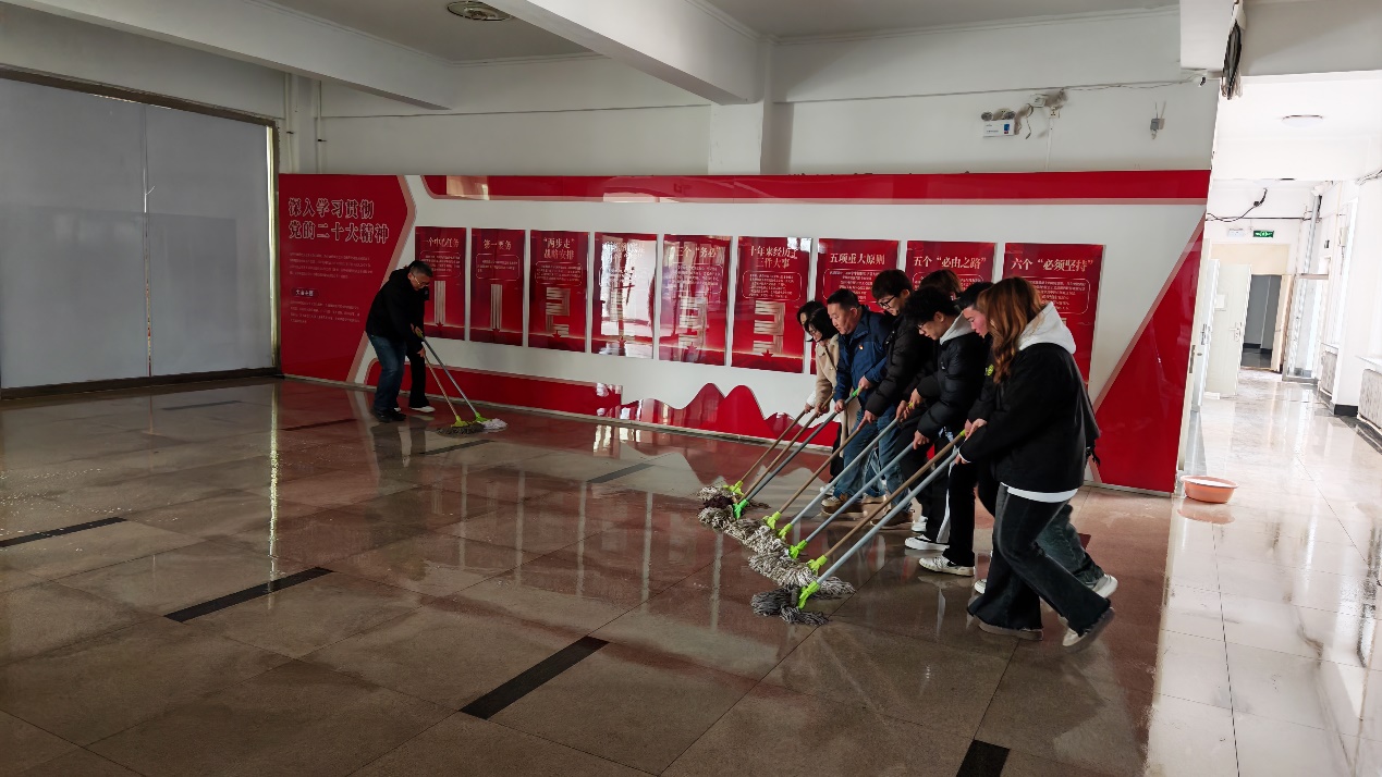 活動伊始,支部負責人對清掃活動進行了細致分工,明確了各小組的負責區域,涵蓋了教學樓分擔區內多處易被忽視的衛生死角,如樓梯周邊、教學樓大廳等區域