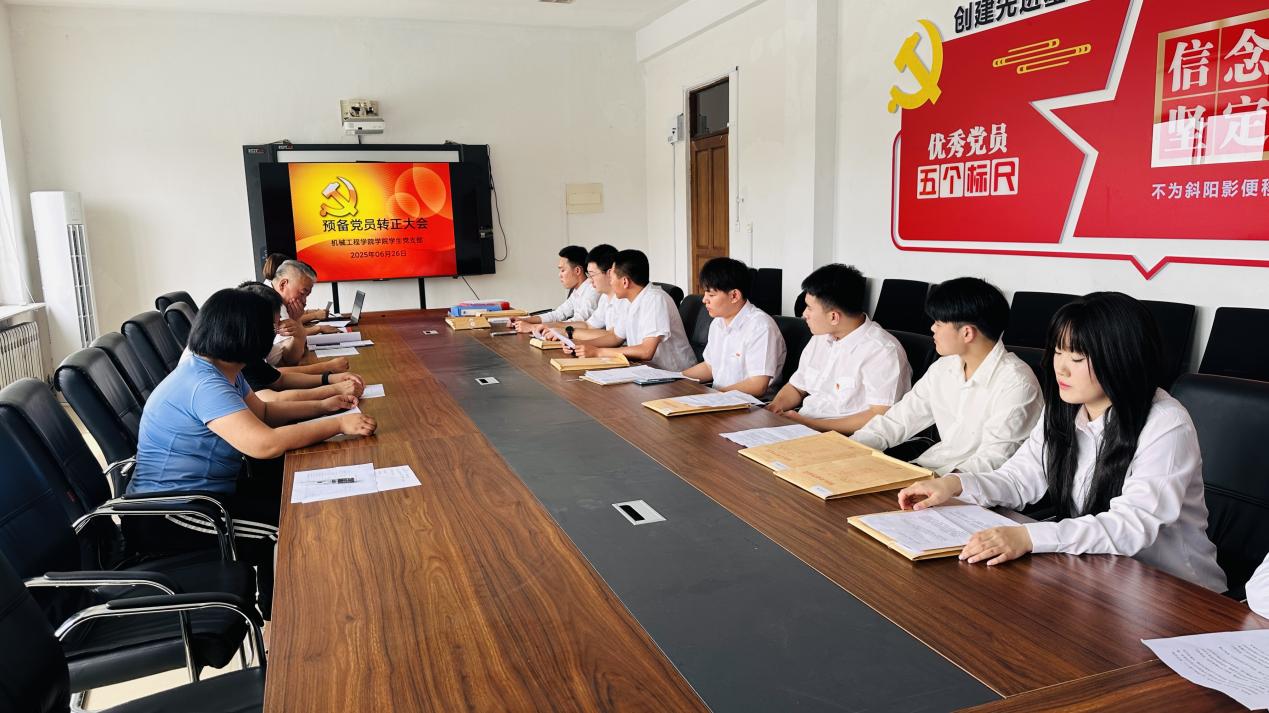 2025年6月26日械工程學院學生黨支部召開黨員大會,經支部大會討論和無記名投票表決,12名預備黨員全部通過轉正申請,如期轉為中共正式黨員。
