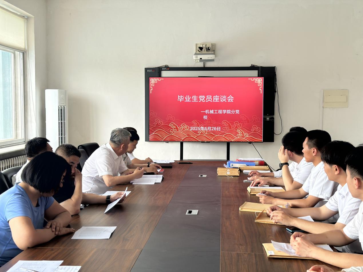 2025年6月26日,機械工程學院分黨校組織召開畢業生黨員座談會。機械工程學院黨總支書記代忠飛主持會議,10余名畢業生黨員齊聚一堂,通過重溫入黨申請書、分享實習與職業規劃體會,共話初心使命,堅定理想信念。座談會上,畢業生黨員們逐一誦讀當年的入黨申請書,回顧入黨初心。一份份真摯的申請書承載著青年學子對黨的向往與承諾,引發了在場黨員的共鳴。黨總支書記代忠飛結合自身經歷,寄語畢業生要“永葆黨員本色,在實踐中踐行初心”,鼓勵大家以黨員標準嚴格要求自己,在未來的崗位上發揮模范帶頭作用。