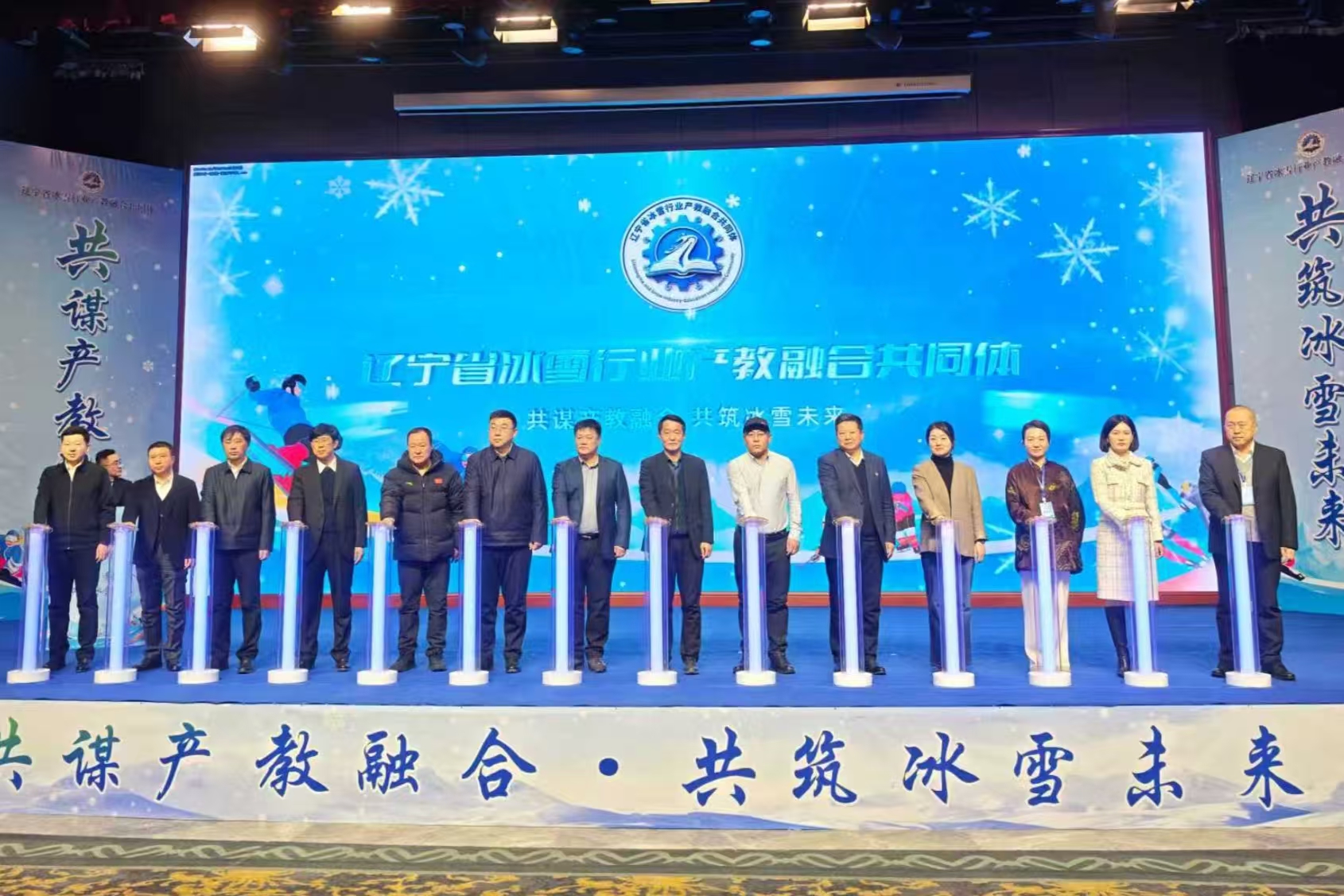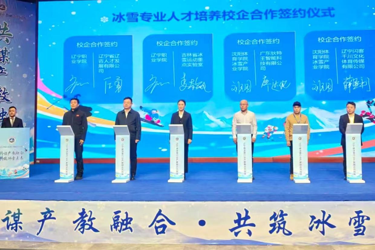 2026年1月14日,在遼寧省教育廳、遼寧省體育局、遼寧中華職業(yè)教育社、遼陽市政府、遼寧省冰雪運(yùn)動(dòng)協(xié)會的支持指導(dǎo)下,由遼陽弓長嶺滑雪場、沈陽體育學(xué)院、遼寧職業(yè)學(xué)院及相關(guān)115家企業(yè)、學(xué)校代表共同成立了遼寧省冰雪行業(yè)產(chǎn)教融合共同體,推動(dòng)冰雪產(chǎn)業(yè)與職業(yè)教育深度融合,創(chuàng)新特色人才培養(yǎng)模式,為冰雪經(jīng)濟(jì)全產(chǎn)業(yè)鏈發(fā)展注入動(dòng)力和活力。我院作為職業(yè)院校代表,與企業(yè)代表、高水平高等學(xué)校代表共同發(fā)起并籌辦了會議。我院黨委副書記、院長宋連喜作會議歡迎辭,學(xué)院副院長劉文星主持會議。